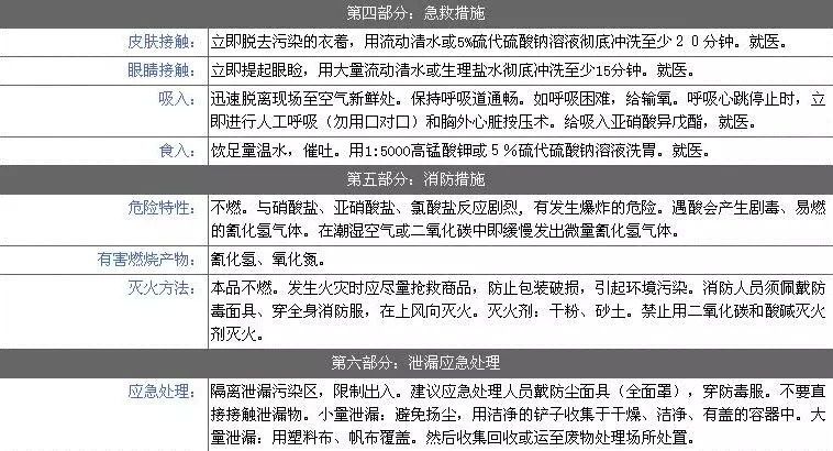 如果危險(xiǎn)情形已經(jīng)發(fā)生,需要緊急處置,直接看第4、5、6部分。該用什么滅火,泄漏怎么處理,上面寫(xiě)的一清二楚。