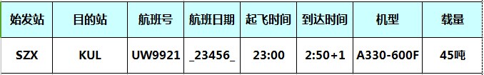 始發(fā)地:深圳機場(ICCS國際貨站)