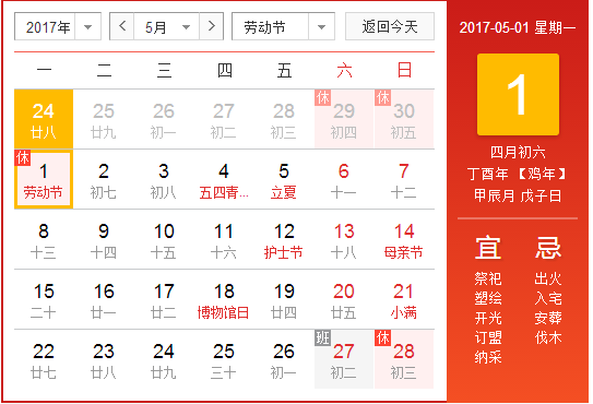 一、2017年五一勞動(dòng)節(jié)放假安排: