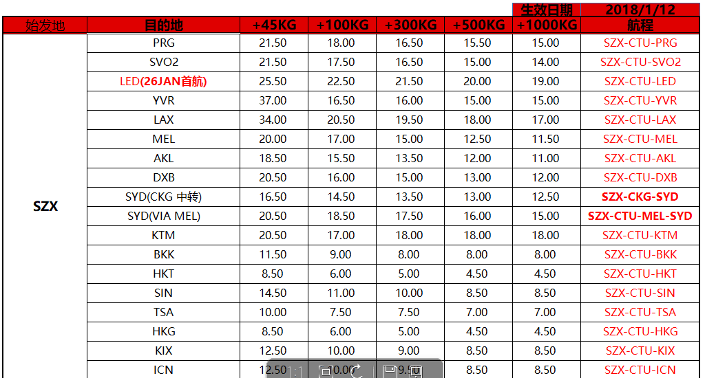 深圳飛,3U川航空運(yùn)專線最新國際空運(yùn)價(jià)格表