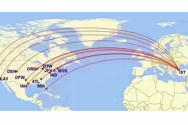 TK(土耳其航空)①IST(伊斯坦布爾)—SEA(西雅圖)27號首航,一周四班寬體
