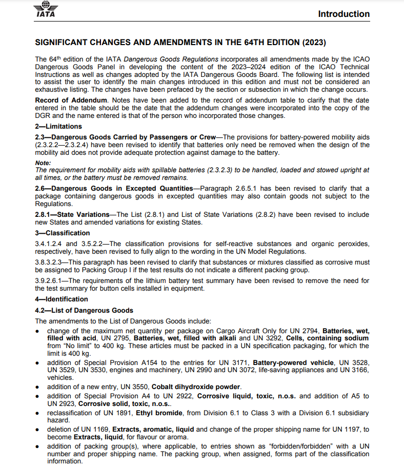 國(guó)際航空運(yùn)輸協(xié)會(huì)發(fā)布的IATA DGR(Dangerous Goods Regulations) 64版(2023年)對(duì)各類危險(xiǎn)品空運(yùn)規(guī)則再次做出了調(diào)整,新規(guī)則將于2023年1月1日開(kāi)始執(zhí)行。