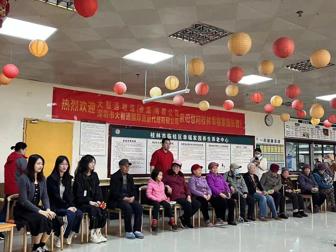 2023年4月8日上午,大智通國(guó)際物流的愛(ài)心團(tuán)隊(duì)載著對(duì)養(yǎng)老院老人們滿滿的祝福來(lái)到了桂林市臨桂區(qū)幸福家園養(yǎng)生養(yǎng)老中心,為敬老院的老人奉獻(xiàn)一份愛(ài)心。