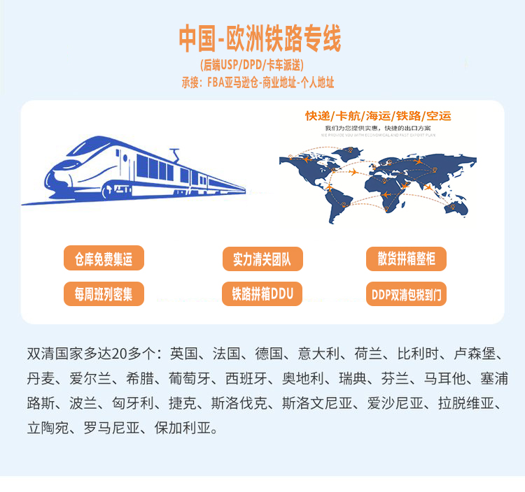 歐洲鐵路雙清包稅/遞延 ----雙清包稅專線,平均提取時效30天。